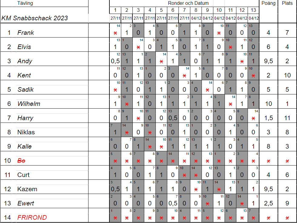 På delad andra plats kom Andy Andersson och Kazem Kadhum med 9,5p.